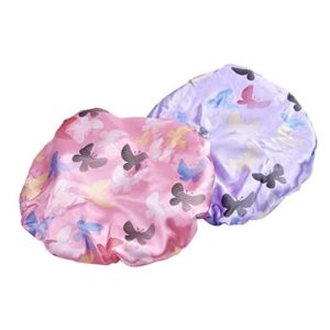 Mudder waterproof women shower bath cap is a good pick for the ones that are looking for something simple without having to pay premium. The shower cap comes actually as a pack of two. Both have the same pattern with butterflies but they have different colors. Both of them are made out of high quality PEVA and they completely protect the hair against water. According to the manufacturers, the caps are fit for showering, SPA and cooking but it is difficult to imagine someone using them in the kitchen.