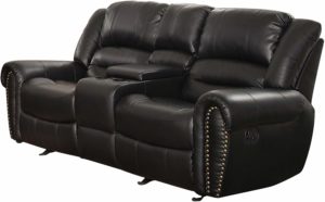 The Homelegance 9668BLK is a great option for the ones that need a two-seat reclining sofa that comes with a few design choices which makes it excellent for viewing movies. It is extremely comfortable with overstuffed armrests and seats while the middle section hides two built-in cup holders. The model easy to assemble and comes with a tempting price tag. Also the version is offered in black bonded leather and comes with a lever for the reclining mechanism.
