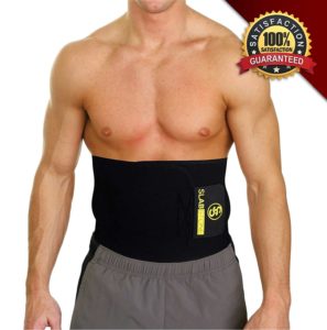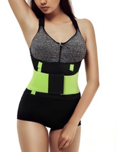 Slabstone offers a decent waist trimmer with a great construction. It is made out of a thick neoprene material that creates the same effect as a sauna. This means that it retains heat and causes the area to start sweating. The model also promotes an improved posture, supports the back and as a bonus the manufacturers included a free phone armband. As for sizing the model is universal and unisex. It has a Velcro strap that keeps it secure into place.