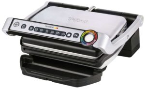 T-fal is a well-known name in kitchen appliances. This grill is on the high end of affordable, but we like it for its reliability and programmable features. It’s the T-fal GC702 OptiGrill Stainless Steel Indoor Electric Grill with Removable and Dishwasher Safe Plates, and here’s why it made our list: